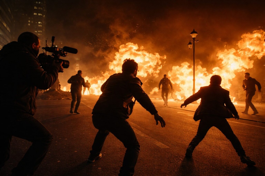 隊戦・作品アクション向け爆破演出、車両破壊・衝撃演出、火炎・煙・粉塵・特殊効果、行政申請・安全計画・保険対応。映画・ドラマ・CM・MV対応可能。